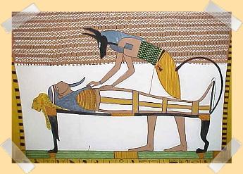 1. Avec son masque de chacal, l'embaumeur incarne Anubis, le protecteur des morts.