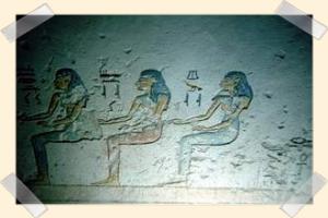 KV1 - Tombe de Ramsès VII  KV1 - Tombe de Ramsès VII | Le tombeau de Ramsès VII est parmi les plus accessibles depuis l'antiquité. Le tombeau proprement dit se compose seulement de l'entrée (b), d'un premier couloir (c) et de la chambre d'enterrement (d) avec une petite salle de prolongation (f) et la place (g). La finition de la maçonnerie et la qualité fine du travail de soulagement indiquent que ce tombeau de petite taille a du être réalisé en peu de temps, à la précipitation du roi. La momie de Ramsès VII n'a pas été encore identifiée. Il faudra attendre 1984 et 1985 pour que ce tombeau soit correctement étudié et dégagé par l'égyptologue Edwin Brock.