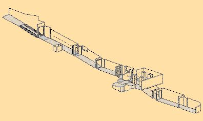 | A - Rampe descendante avec des marches B - Couloir descendant avec la petite place (scènes de Re, roi avant Re-Horakhty à l'entrée) C - Couloir (scènes de Râ) D - Couloir (scènes de l'Amduat) E - Les places du portier F - Salle du funéraire (scènes du Takhat offrant aux divinités) G - Rampe H - Hall à Colonnes (Baketwerel, épouse de roi, offrant offrant aux divinités ; scènes du livre des morts) I - KV11 à l'origine à traversé le toit ici J - Couloir K - Couloir utilisé comme chambre d'enterrement |