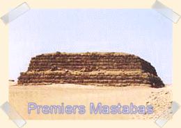|  | Ce alors que les rois et les nobles des premières dynasties firent recouvrir le monticule par un empilement de briques crues ou de pierres tailles qui prit la forme d'un banc aux parois latérales légèrement inclinées. C'est ce qu'on appellera plus tard "Mastaba" qui signifie en arabe "Banc". Historiquement, le plus ancien mastaba de Saqqarah est celui du roi Aha, fils de Narmer qui pourrait en réalité être le roi Ménès, premier souverain de la première dynastie égyptienne. |